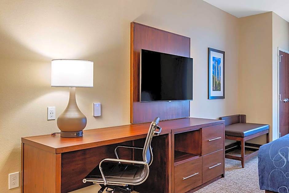 This suite features a tea and coffee maker, a seating area and a flat-screen TV with streaming services.